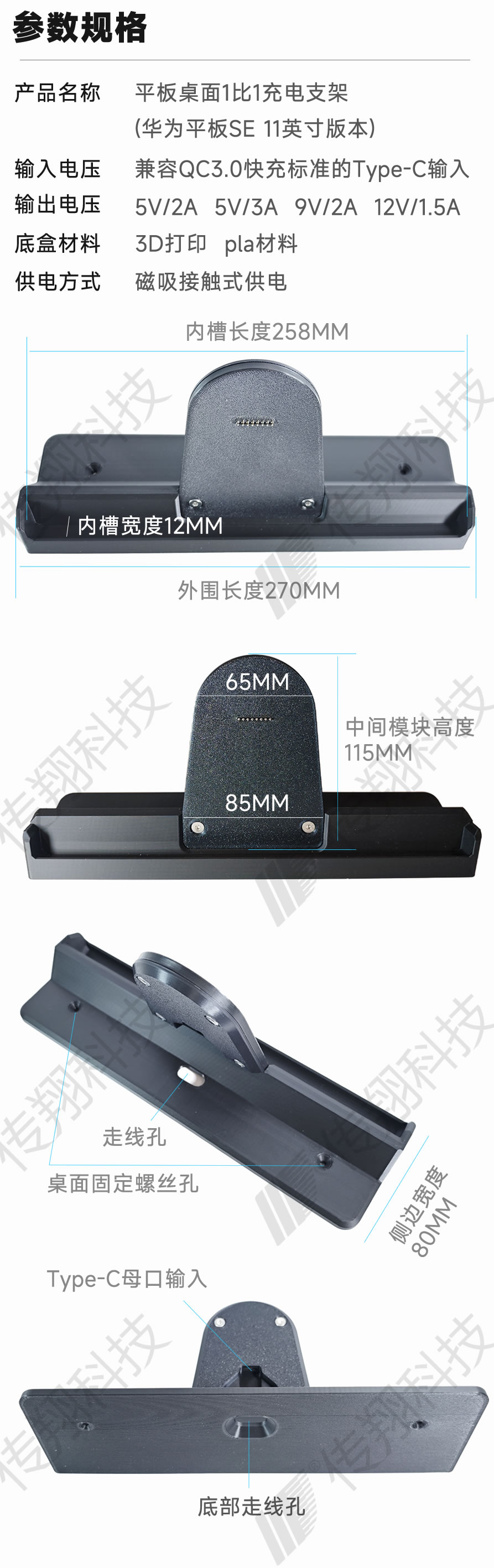 一比一定制的桌面磁吸充电支架,可以向下走线,可通过螺丝固定在桌面。