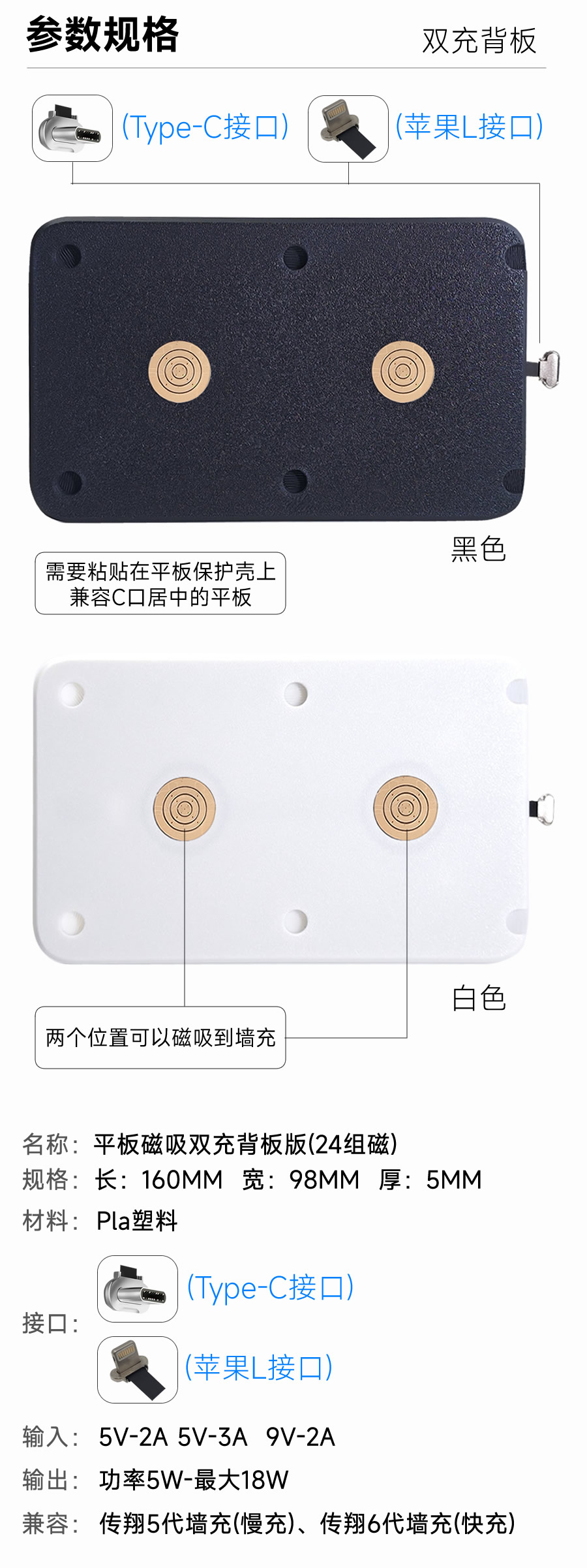 平板磁吸墙充背板双充快充版24组磁L口黑色 6代慢充