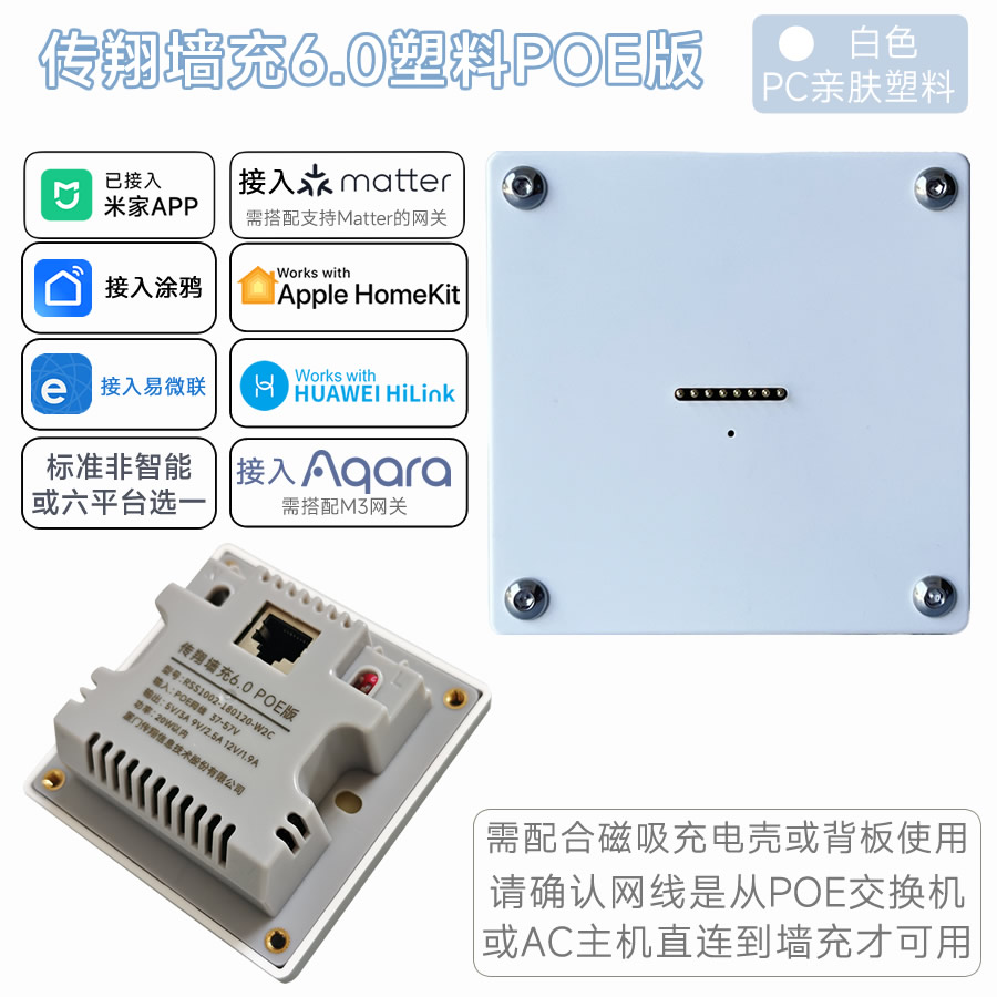 仅POE墙充底座 需配合传翔充电壳使用 接入米家WiFi 支持QC快充标准