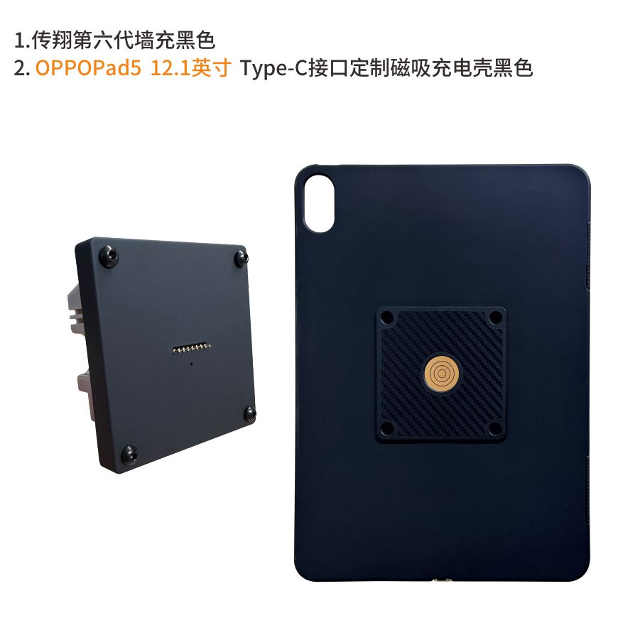 智能无线墙充的配件,安装于平板保护壳背面,要求平板充电口为TypeC接口且居中位置。